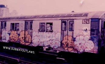 I started writing in 1977 in Astoria Queens. Back then it was the RR line. I remember seeing DEAN BYB, DON ONE MAFIA, DS3, UPS2, FBI, GEAR BYB, SMOKE TKC (original prez) ROTO NCB, HATE 168, T59, AS 2 TBB, OE3, P13, so many. I saw all these tags and throw ups and  I was fascinated because I was drawing allot when I was a kid. (still do) I remember seeing CAINE 1, TRACY 168, CHI-CHI 133, SKY 2, SON 1, PRO 1 all on the 7 line. I used to go to the MET games at Shea and YANKEE games in the Bronx. There I saw all the BLADE and COMET stuff. BAN2, MITCH 77, BLAST and FOCUS pieces.. all bugged out lettering and characters.