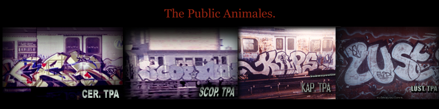 bombing in the next lane. You figure??!! Once me and REC.127 was doing pieces in the Canal Street tunnel where bums lived and noticed an all white train pull in and just sit there, next thing there were about 15 cops jumping off the train in the tunnel. Me & REC.127 ran thru the next station into the next tunnel and escaped thru a hatch in the middle of Canal St. It looked like we were shooting a movie surfacing thru the ground in broad daylight!! Another memorable raid was once me, TESS Xmen, & BOE L.O.C. was doing insides at the E&F yard with brand new mops with red opaque and brown opaque ink.....the drips was crazy!! Workers tried too ambush us, but no luck! Another raid was at the New Lotts yard with me and REC.127, Sloan & LOST RIS. I remember looking up and seeing a cop in a train drivers booth, after I saw him I jumped under the train, then the bastard made the train move while I was underneath. As I surfaced another cop tried too grab me, I threw my whole bag of paint at him, hitting him in the head. I ran too the hole we had cut, but police was parked there |