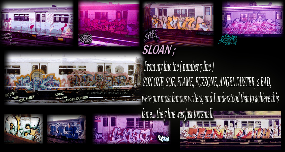 ~ ~ Started : 1980's ~ ~ Alias : SL ONE Area : Jackson Heights , Queens N.Y. Writing Groups : TPA, TC, 156 - ALL STARS Main Lines : RR's , N , E , F, J , LL , M , N. |
