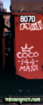 Central Park wall, early 1972 with hits by..SMOKEY 1, TRAC 2, JIVE 179, SUPER BEE, SEXY 62, STAG 161, and MOUSEY 89