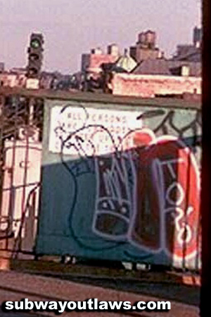 MC throw up by SLY 108. SLY 108 was the king of the 6 line and a All city writer as well. SLY 108 aka MC and his boys held a strong presents on the six line. The 6 yard boys also controlled the 6 line and in there day where the most feared group, even more dangerous then the famous The 3 yard boys in Manhattan. |
